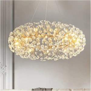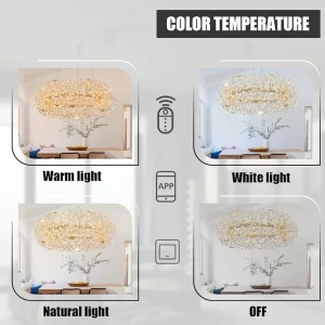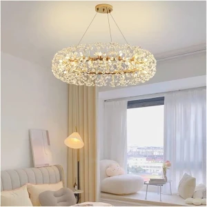 Designer Gold Finish Round Luxury Crystal LED Chandelier - Warm White