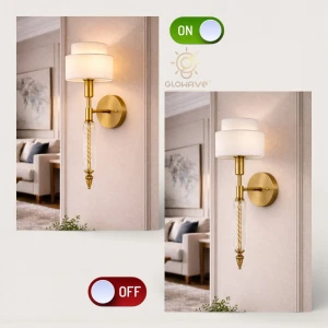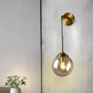 Creative Down Smoky Glass Golden Wall Lamp - Warm White