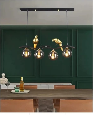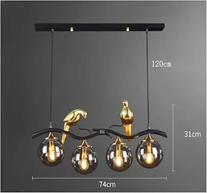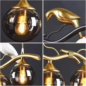 Artistic Bird Pendant Chandelier with 4 Glass Shades Black & Gold Hanging Light - Warm White