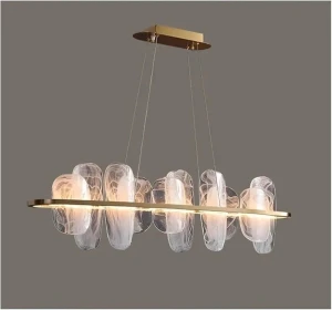 Luxury Gold Chandelier with Sculpted Glass Elements Hanging Light - Warm White