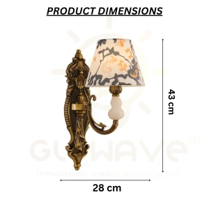 Gold Wall Sconce with Printed Glass Shade & Crystal Accent Wall Lamp - Warm White