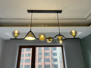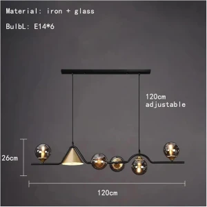 Linear Pendant Chandelier with Mixed Glass Shades Amber Glass Hanging Light - Warm White