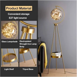 Luxury Crystal Globe Floor Lamp Brushed Gold Tripod Stand with Clear Glass Sphere Standing Lamp