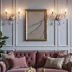 Antique Gold Finish Crystal Wall Light with Golden Frame Lighting Sconce - Warm White