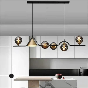 Linear Pendant Chandelier with Mixed Glass Shades Smoky Glass Hanging Light - Warm White