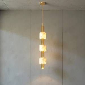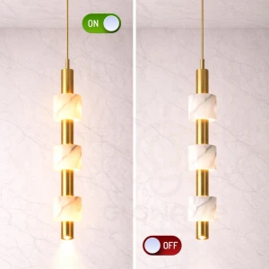 Ceiling Lamp with Natural Glowing Marble Cylinders & Bright Downlight - Warm White