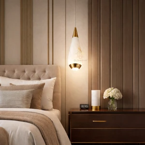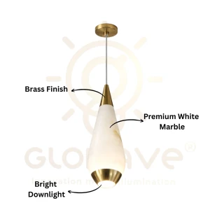 Premium White Marble Teardrop Ceiling Lamp with Bright LED Downlight - Tricolor