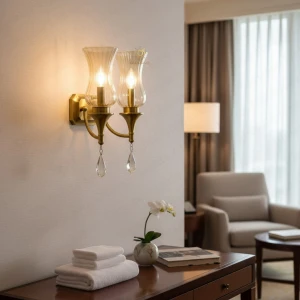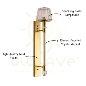 Crystal Gold Finish Clear Glass Crystal Light Wall Lamp - Warm White