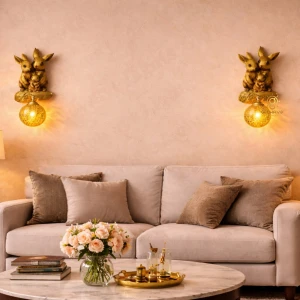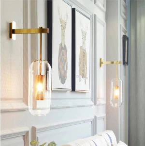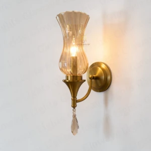 Creative Down Amber Glass Golden Wall Lamp - Warm White