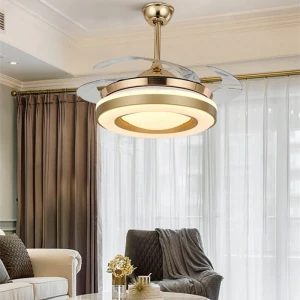 Gold Ceiling Fan with Invisible Blade Chandelier Fan - Tricolour