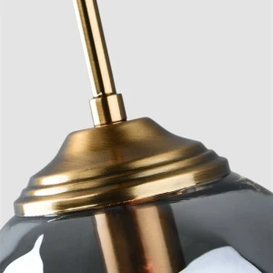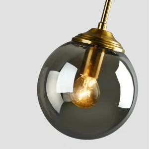 Smoke Glass Globe Pendant Light with Gold Finish Holder Hanging Light - Warm White
