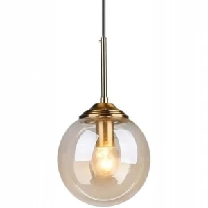 Amber Glass Globe Pendant Light with Gold Finish Holder Hanging Light - Warm White
