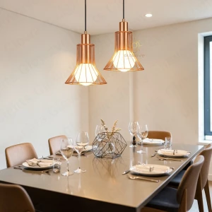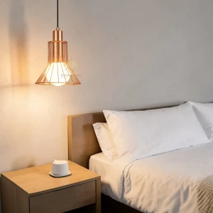 Rose Gold Cage Hanging Pendant Light with Acrylic Shade Hanging Light - Warm White