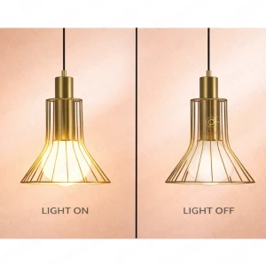 Gold Cage Hanging Pendant Light with Acrylic Shade Hanging Light - Warm White