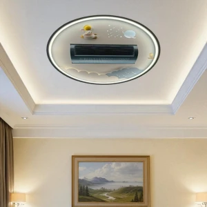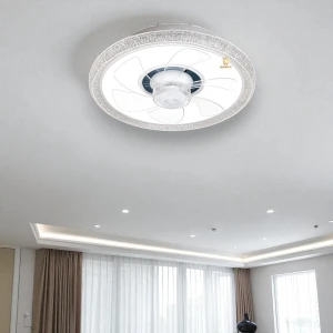Bladeless Fan with Light White Body Round Ceiling Fan Lamp Remote Control - Tricolour (FS 2490)