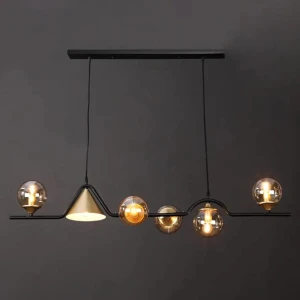 Linear Pendant Chandelier with Mixed Glass Shades Amber Glass Hanging Light - Warm White