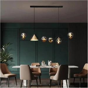 Linear Pendant Chandelier with Mixed Glass Shades Smoky Glass Hanging Light - Warm White