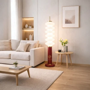 Lava Floor Lamp Red Glass Lampshade Golden Body Reading Floor Light Standing Lamp - Warm White
