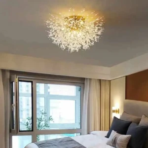 Rose Gold LED 12 Leaves Flower Shape Crystal Ceiling Light - Tricolour