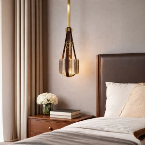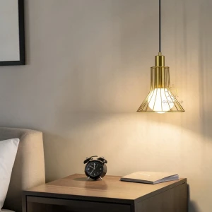 Golden LED Round Bedside 1 Pendant Hanging Light - Tricolour Light