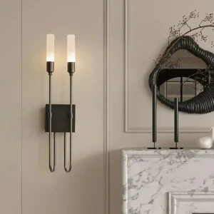 Smoky 600mm Metal Rod Sconce with Textured Glass Shade Wall Light - Tricolor