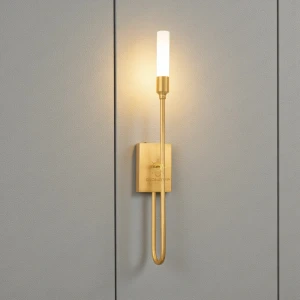 Golden 600mm Metal Rod Sconce with Textured Glass Shade Wall Light - Tricolor