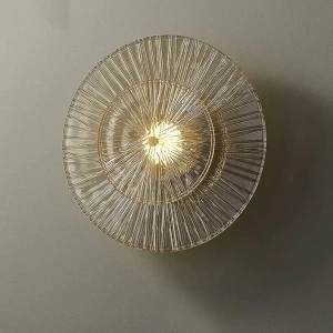 Gold Wall Light with Ribbed Glass Shade & Ring Accent - Warm White