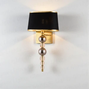 Premium Gold Wall Light with Black Fabric Shade & Glass Beads - Warm White