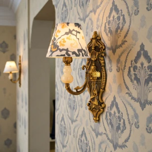 Classic Wall Light with Fabric Shade Antique Design Gold Finish Wall Lamp - Warm White