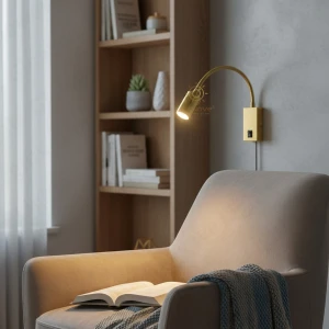 Adjustable Gooseneck Wall Spot Light Gold Finish LED Reading Light - Warm White