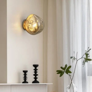 Golden Finish LED Wall Light with Artistic Melted Glass Design - Warm White