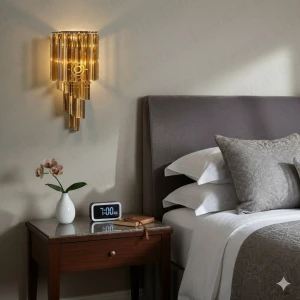 Italian K9 Crystal Golden Wall Lamp Light - Warm White (9857-1W)