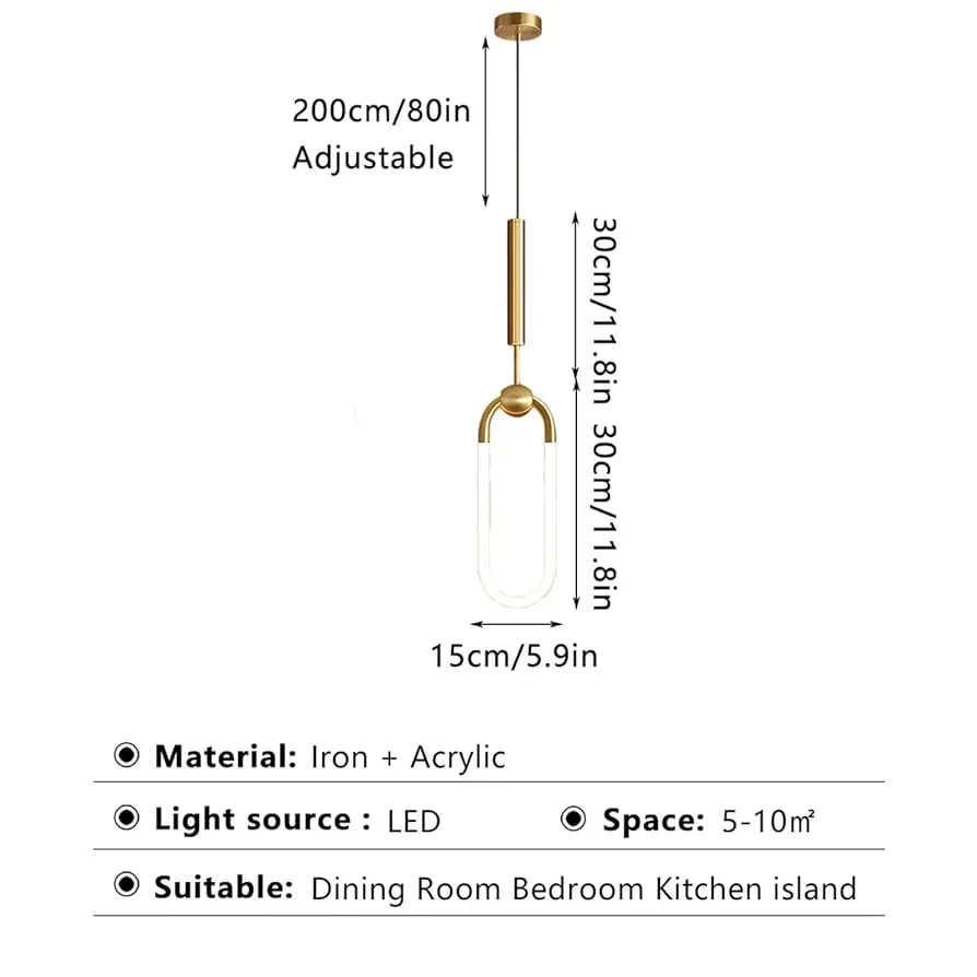1 Oval Shape Gold Finish Acrylic Bedside Pendant Hanging Light - Tricolour