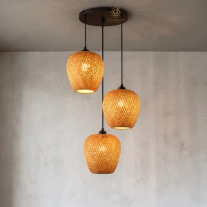 3-Light Rattan Pendant Lamp Adjustable Hanging Ceiling Light - Warm White