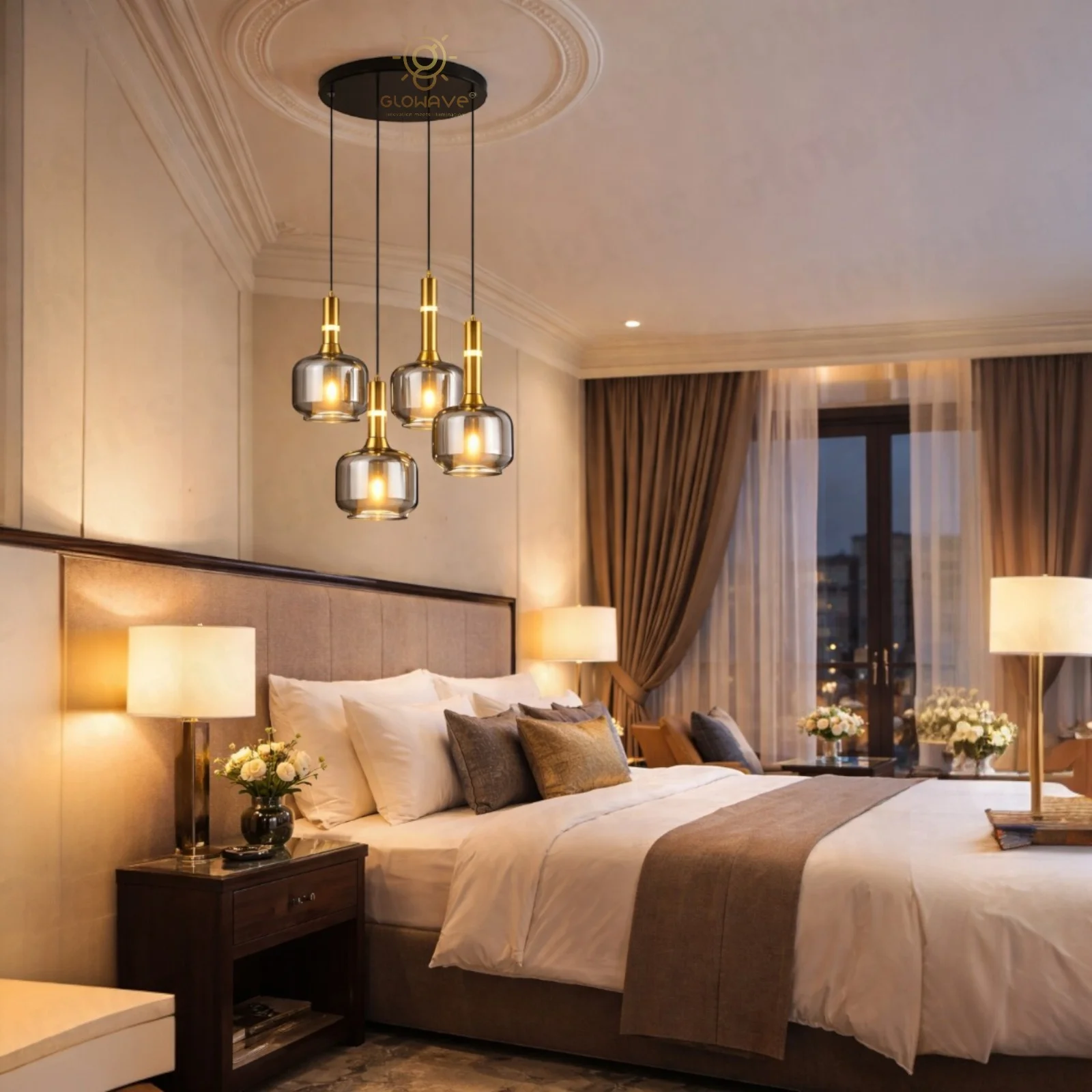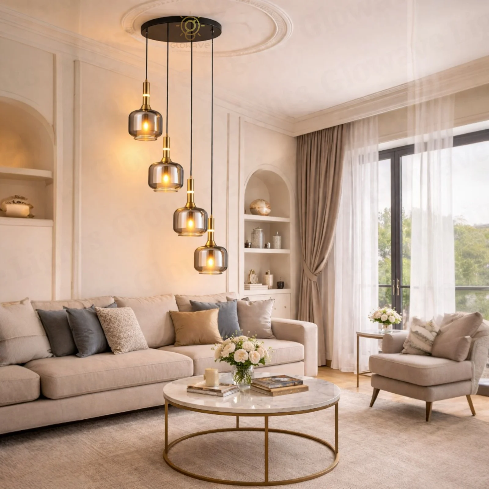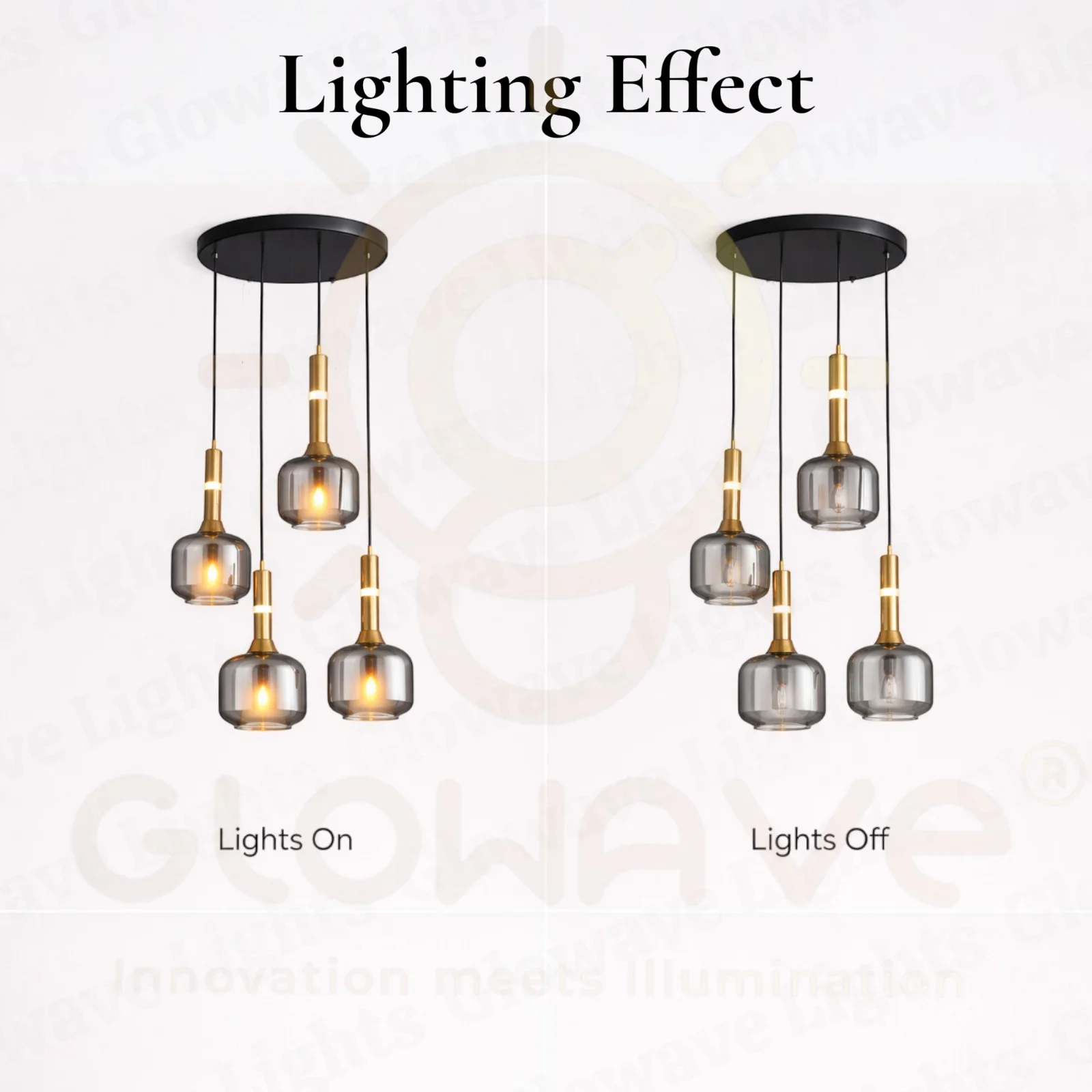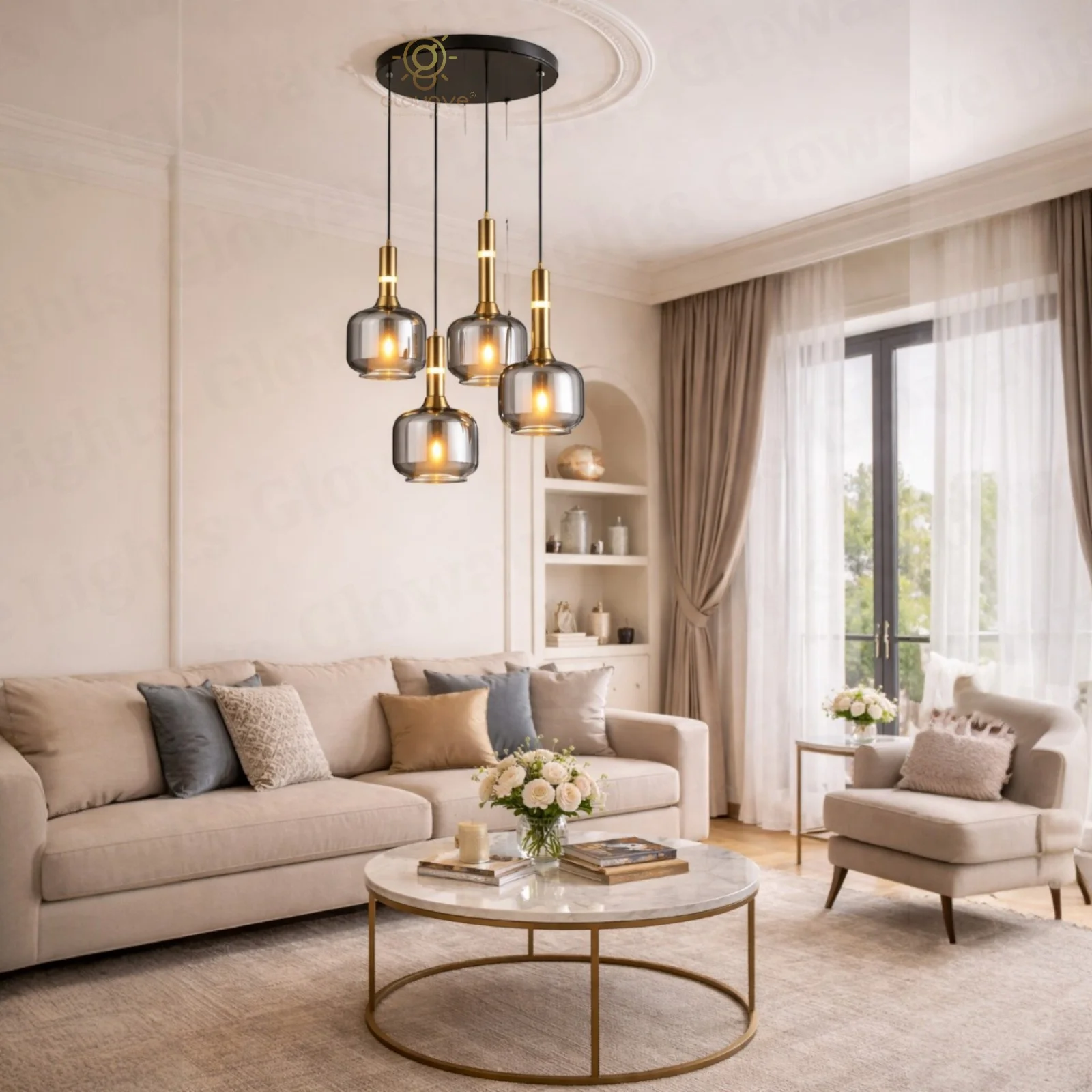 Upgrade your home décor with this stunning 4-Light Cluster Pendant Hanging Lamp, designed to bring a perfect balance of elegance and functionality. Featuring beautifully crafted smoke glass shades paired with a premium gold finish, this light fixture creates a sophisticated focal point in any modern space.