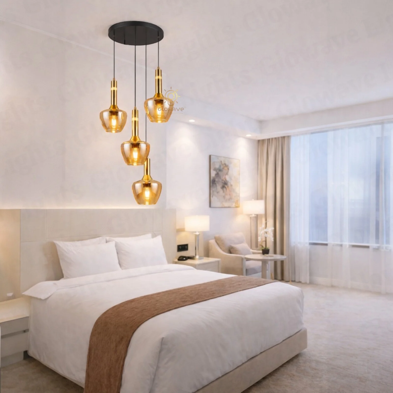 - Amber-tinted glass creates a soft, inviting glow, ideal for relaxing environments like living rooms, bedrooms, and dining spaces.