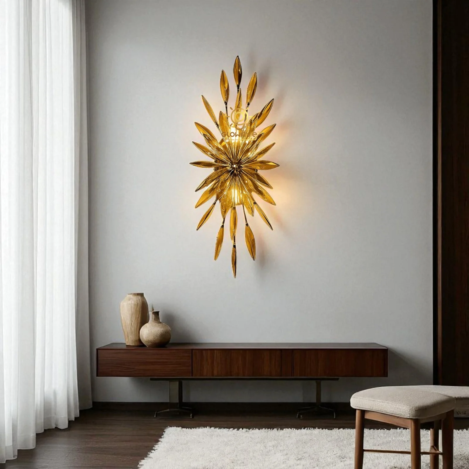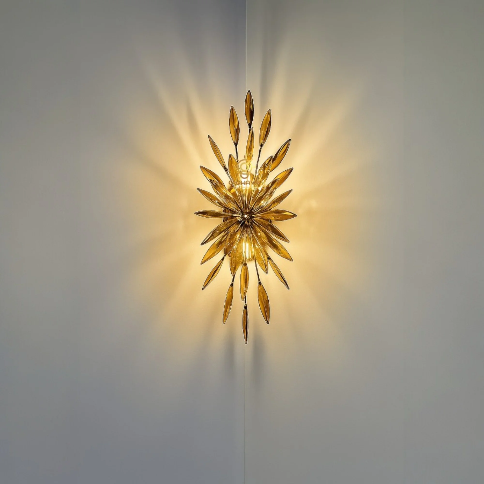 - Stylish Design: Amber Finish Crystal Shade Wall Sconce.