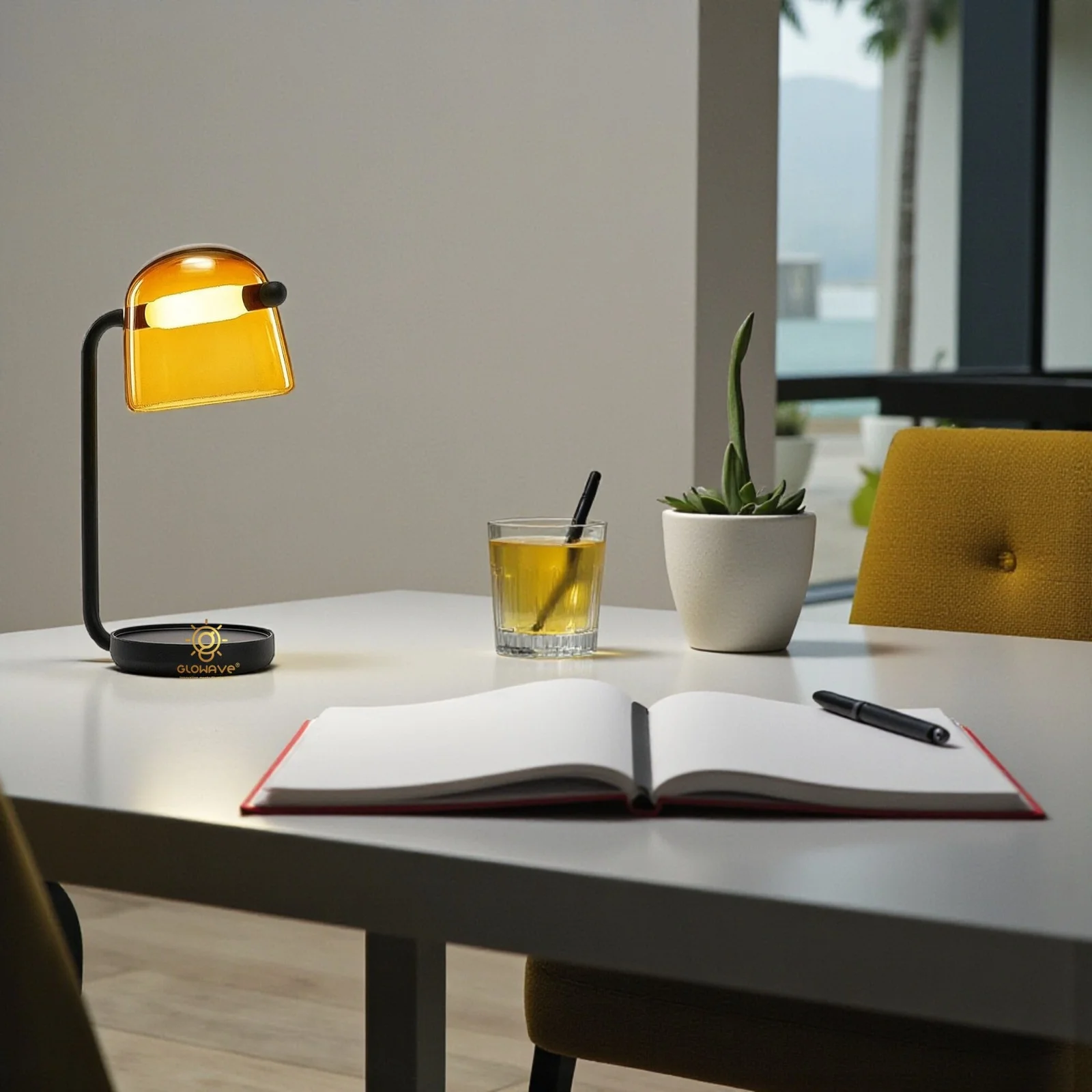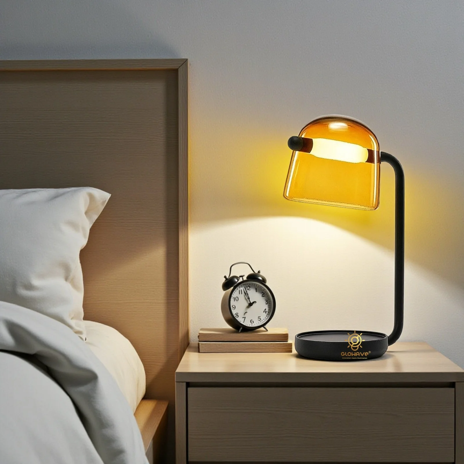 Illuminate your space with the elegant Glowave Glass Shade Amber Base Desk Table Lamp. Designed for both home and office use, this lamp seamlessly blends modern aesthetics with functional lighting. Featuring a sleek black base and a stylish glass shade, it casts a soft, warm white glow, perfect for creating a cozy and inviting atmosphere. Whether you're working at your desk, reading, or adding a touch of ambiance to your living room, this lamp is the ideal choice. The bulb is included, ensuring hassle-free setup and energy-efficient lighting. Enhance the beauty of your space while enjoying the perfect balance of style and practicality.