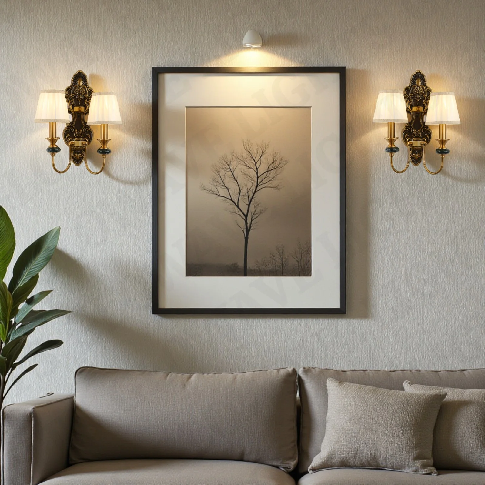 - Stylish Design: Gold Finish Fabric Lamp Shade Wall Sconce.