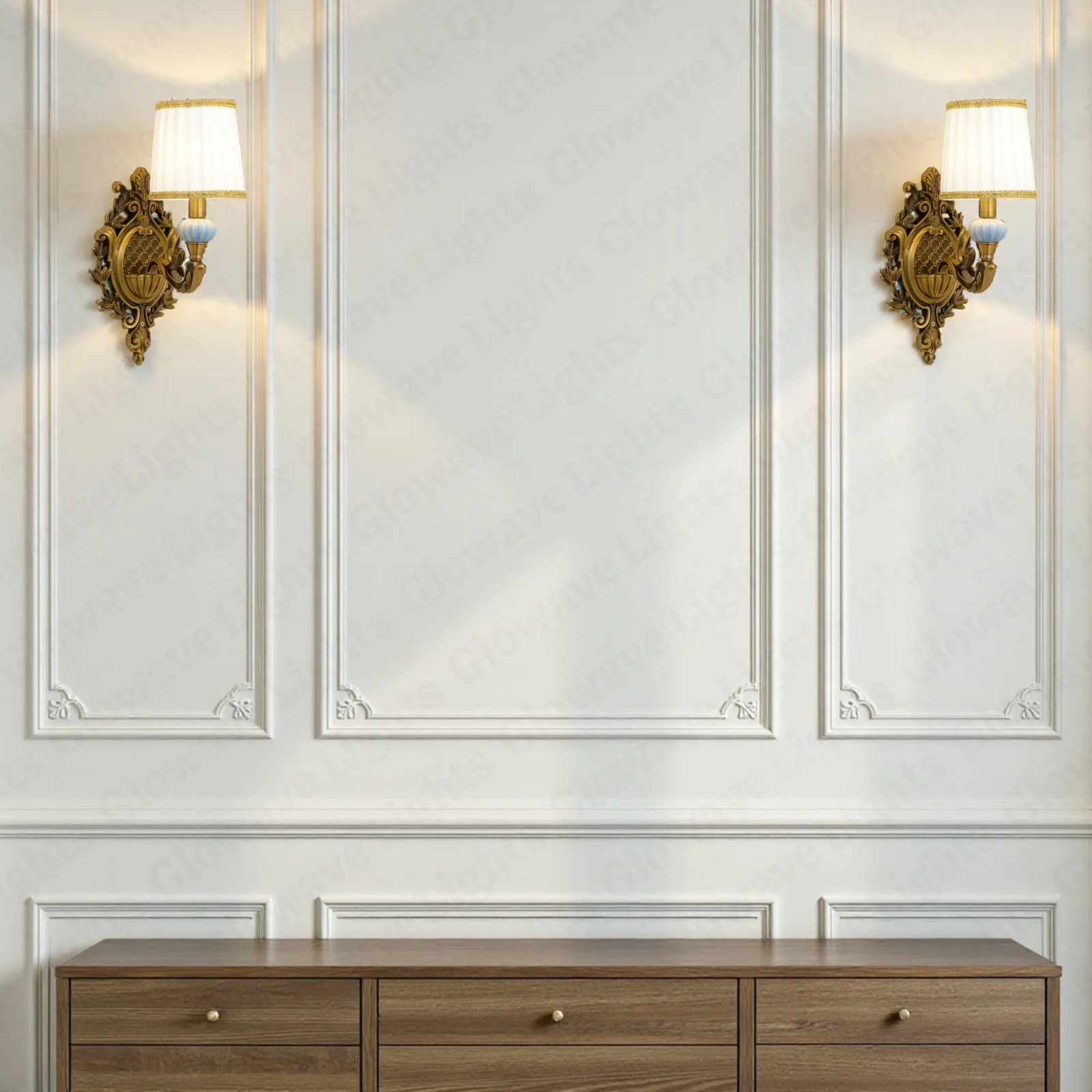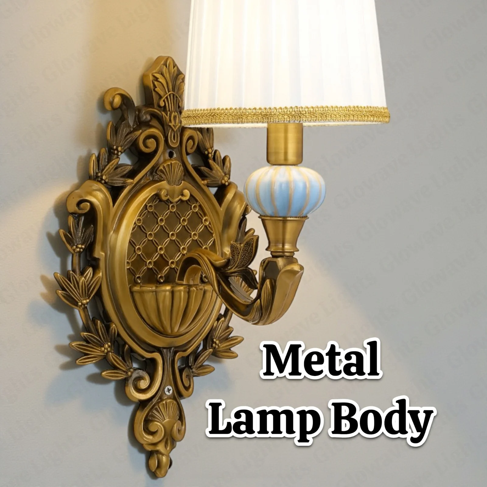 Enhance your home decor with the Antique Gold Finish Body Fabric Lampshade Vintage Wall Lamp. This exquisite sconce fixture, perfect for living rooms, bedrooms, and bedsides, boasts a timeless antique brass finish and fabric lampshade design. It casts a warm white light, creating a cozy and nostalgic atmosphere. Ideal for adding vintage charm to any space.
