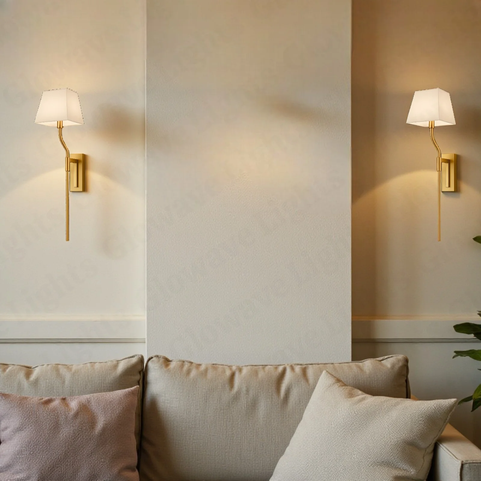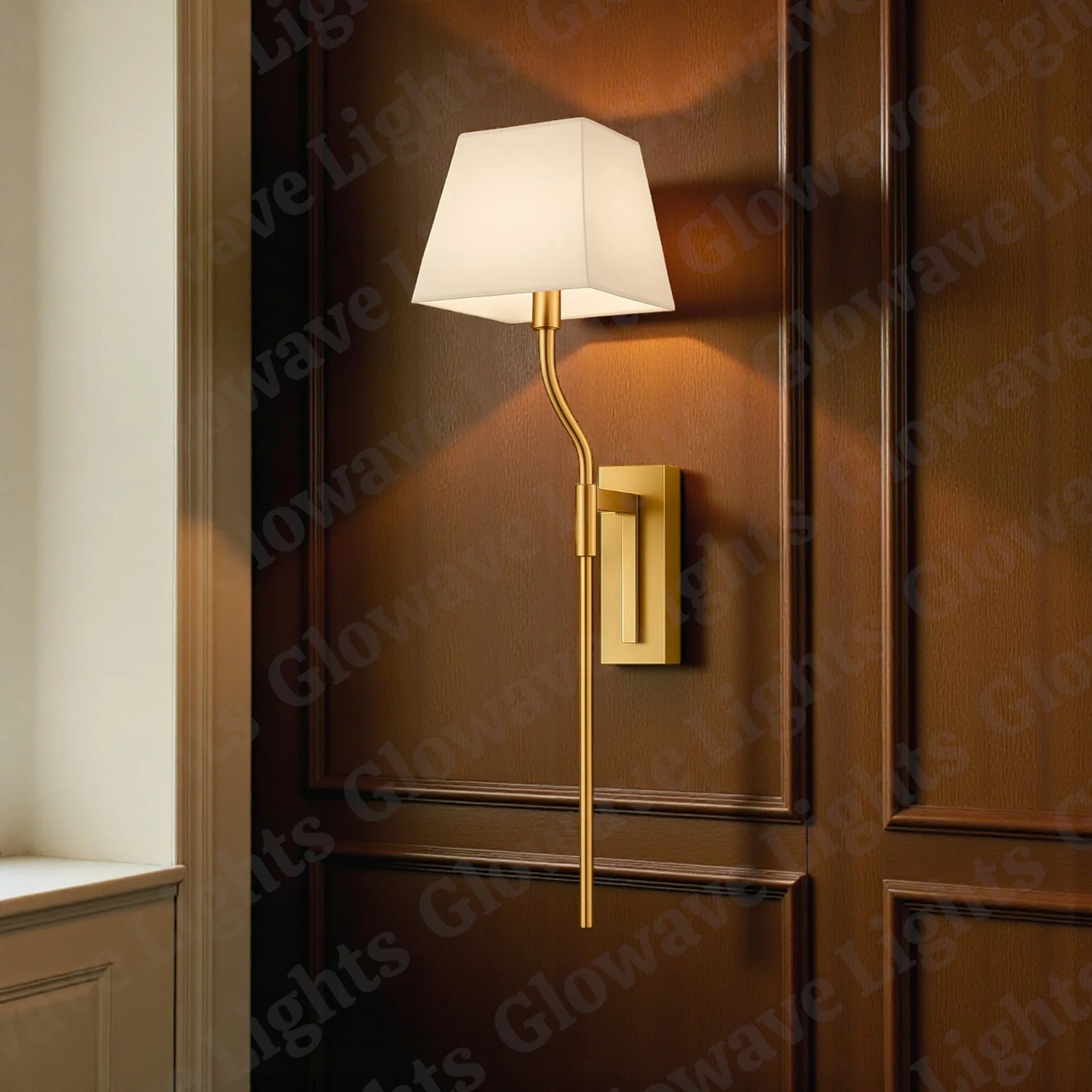 Antique Gold Finish Body White Fabric Lampshade Wall Lamp - Warm White