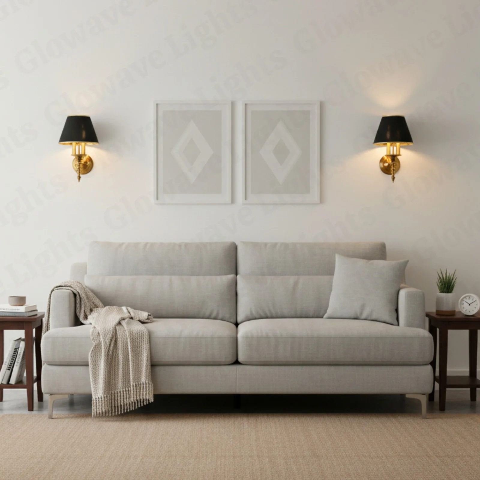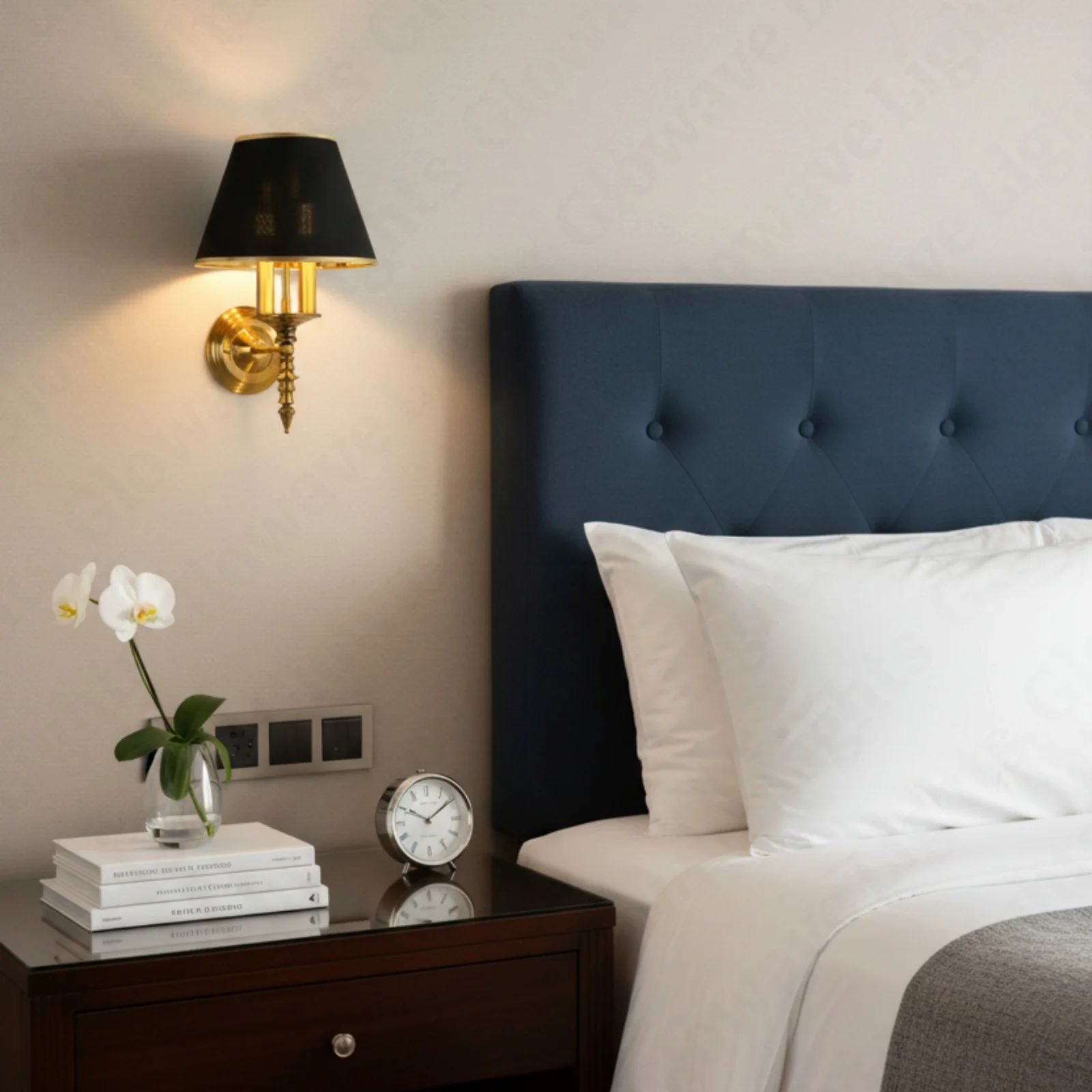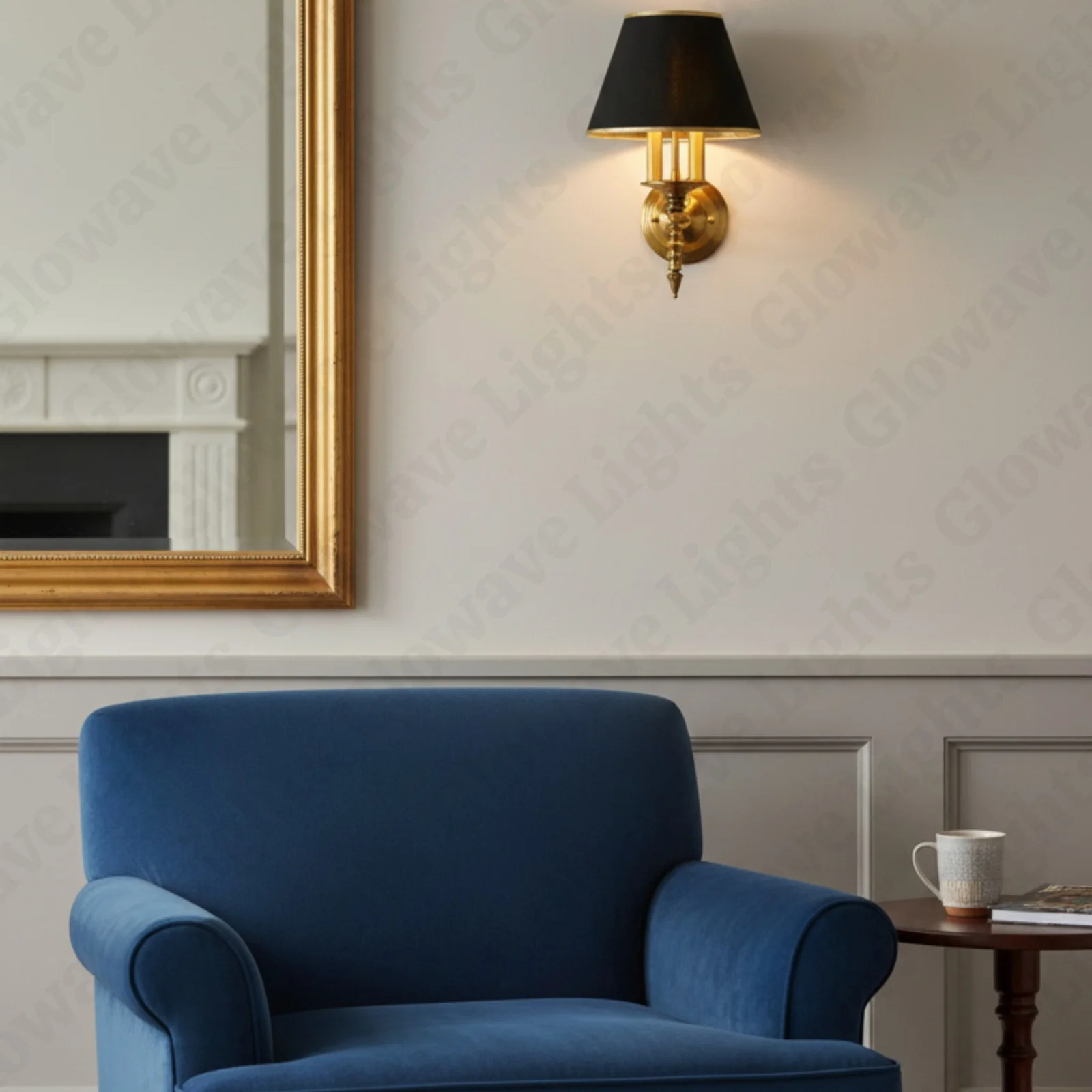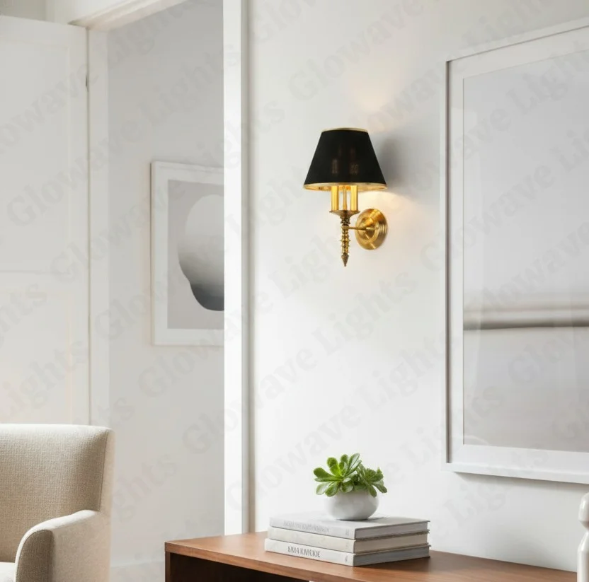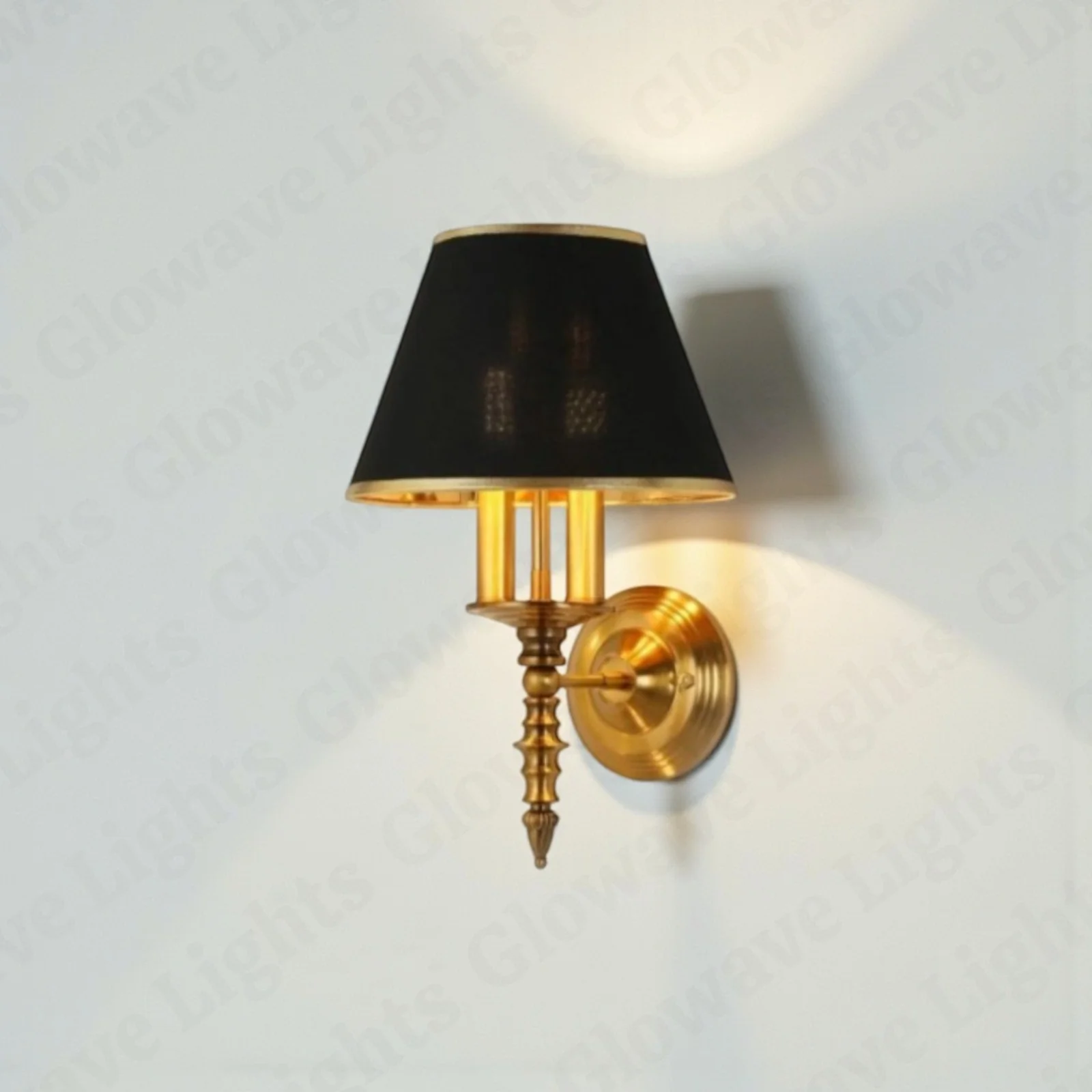 - Stylish Design: Gold Finish Fabric Shade Wall Sconce.