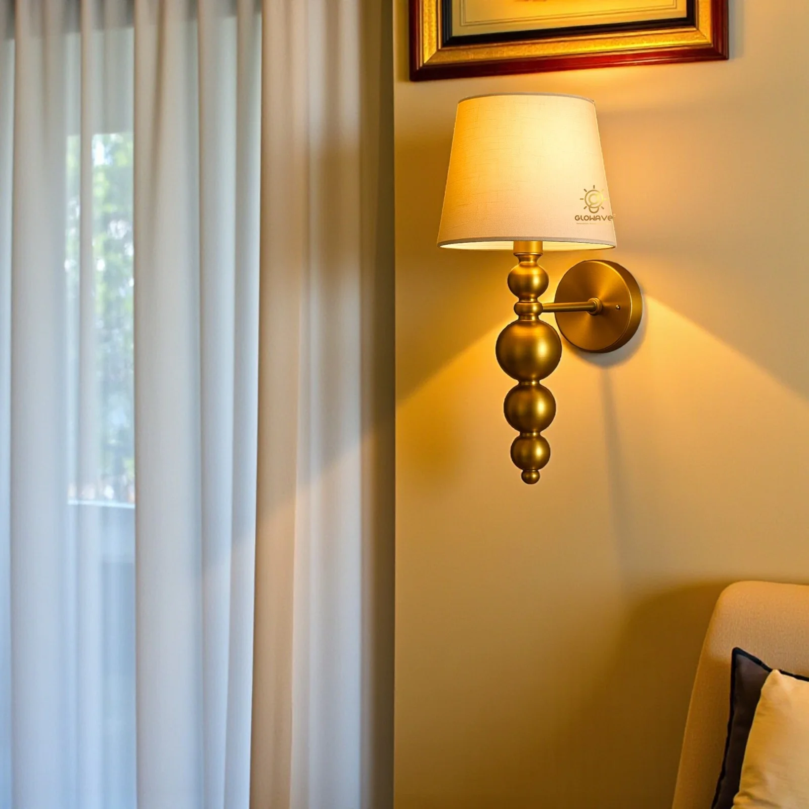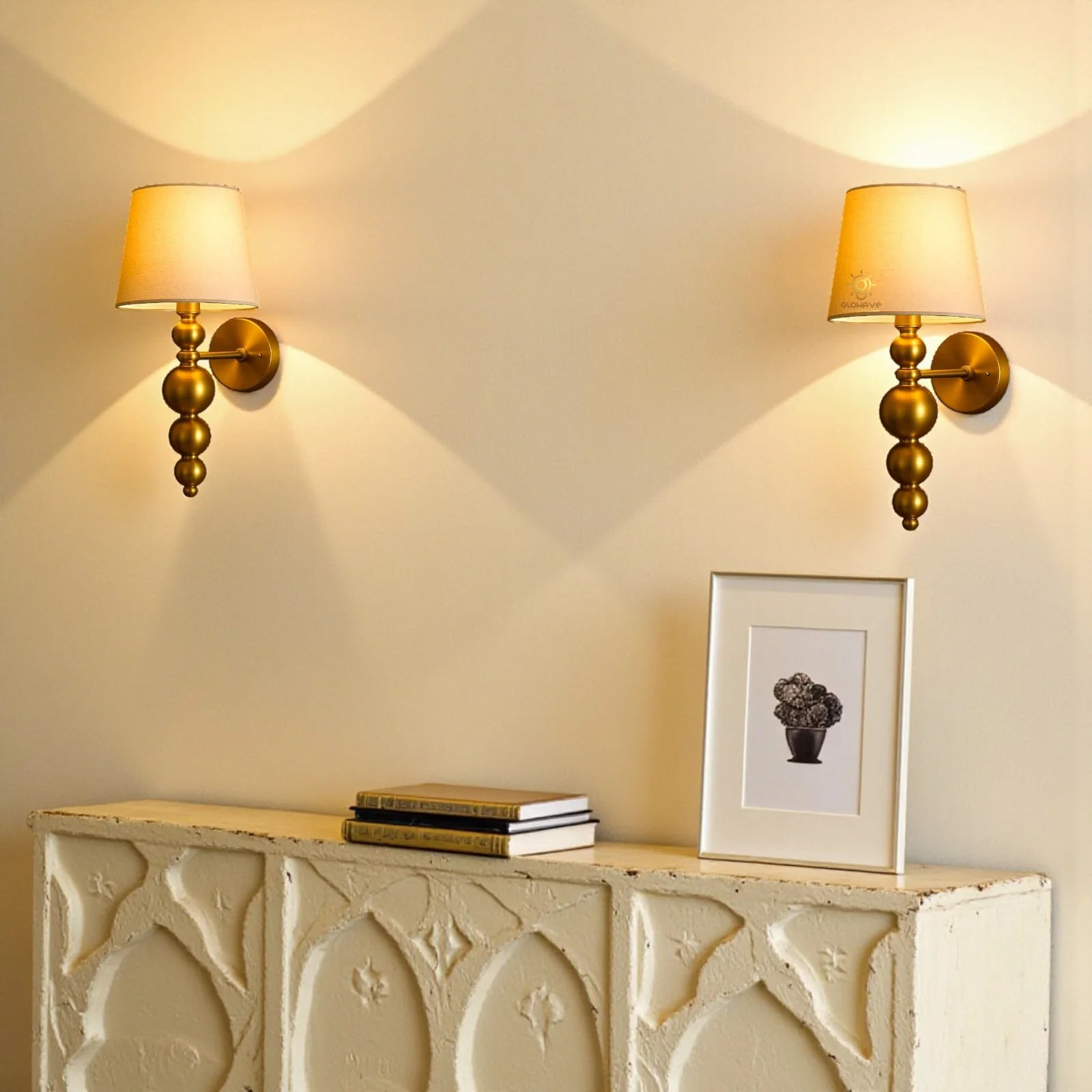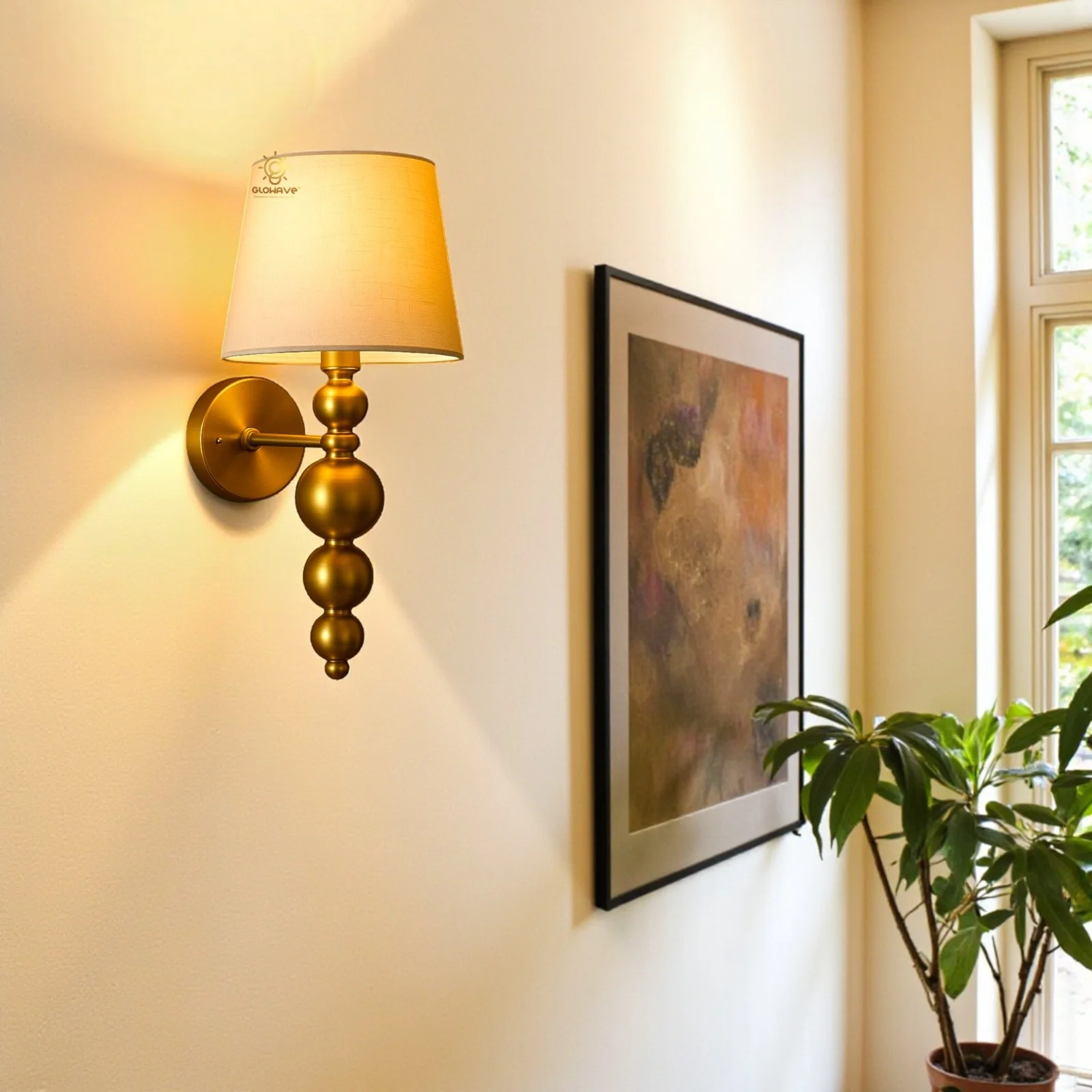 - Stylish Design: Gold Finish fabric Shade Wall Sconce.