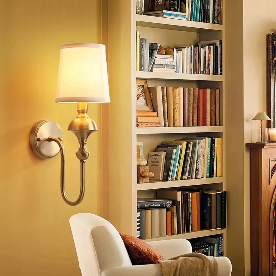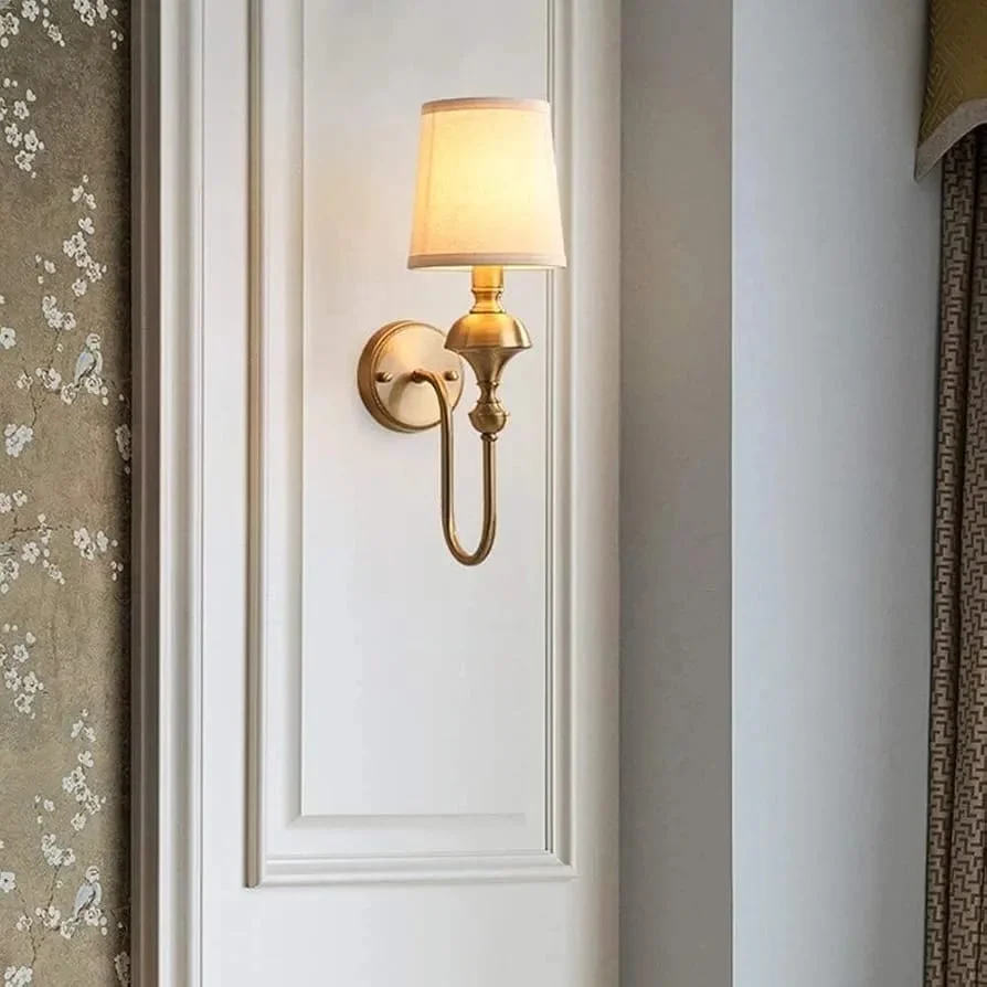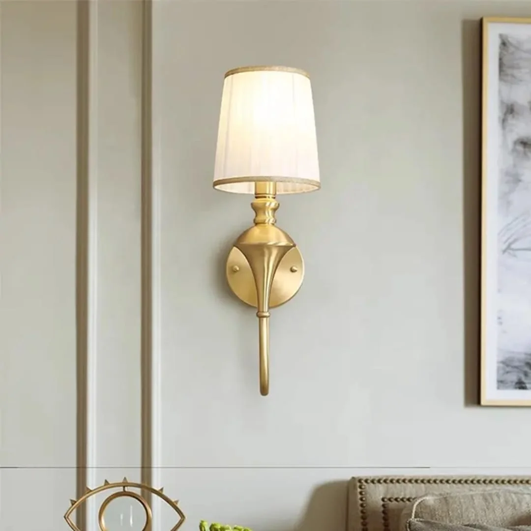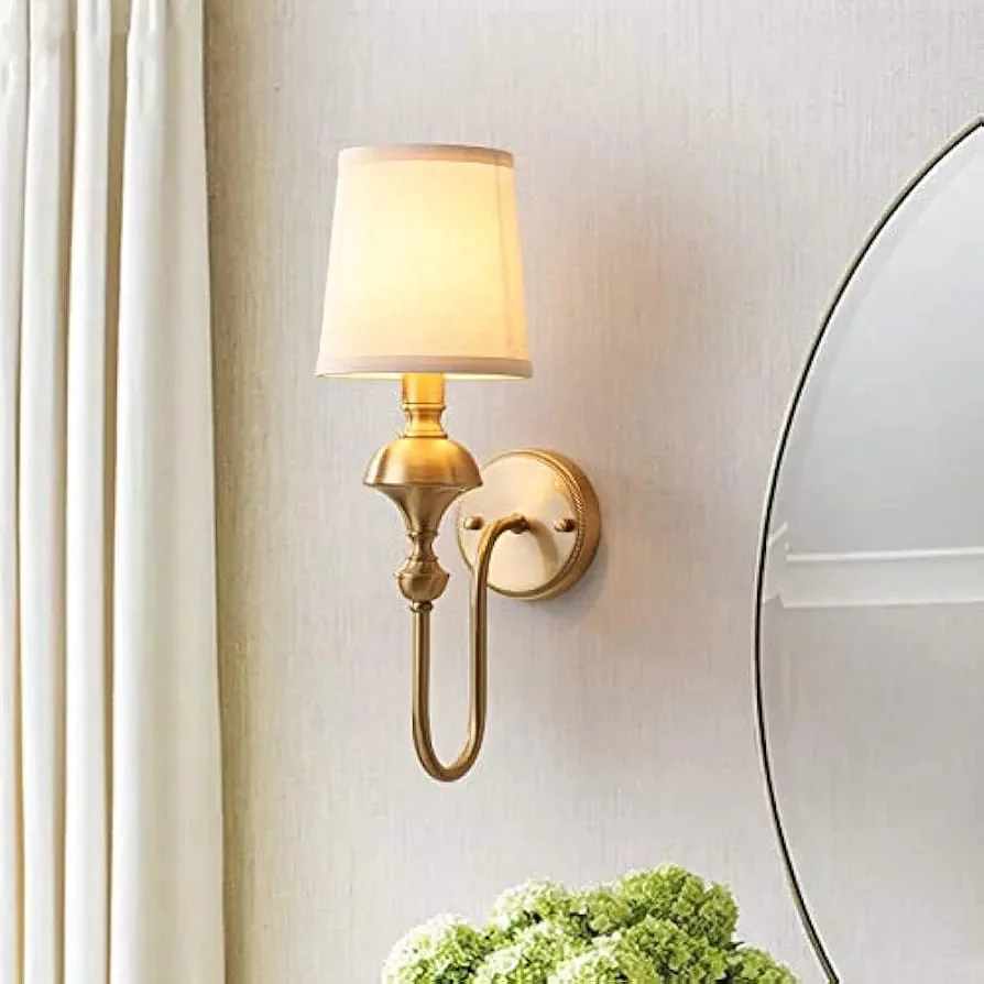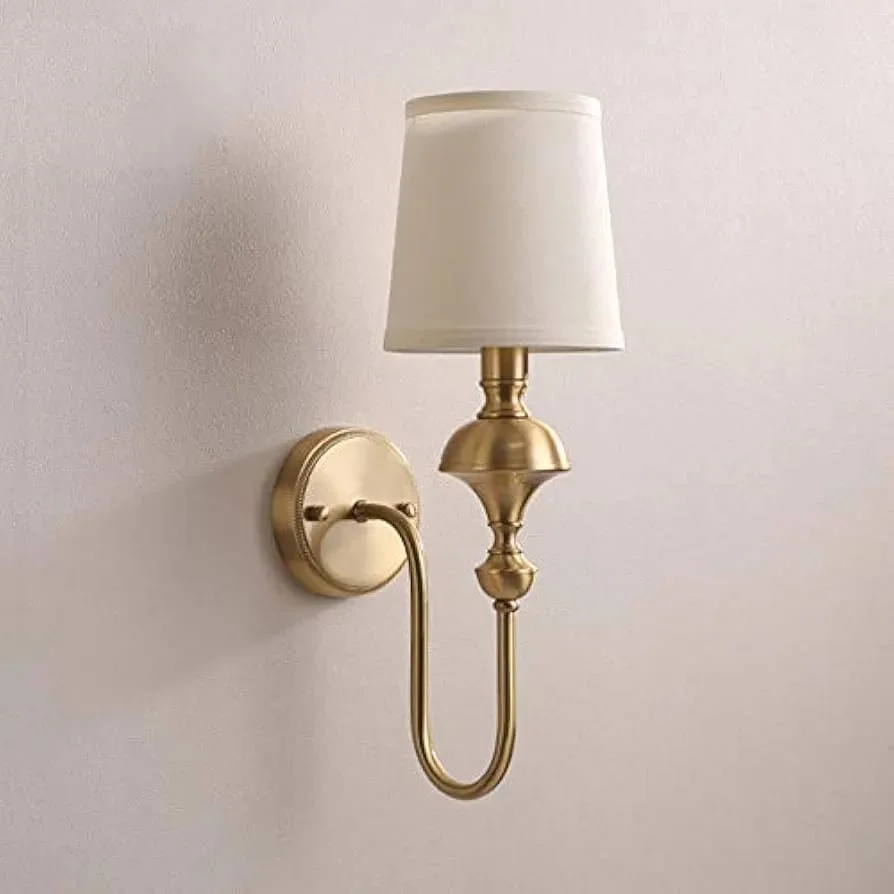 - Stylish Design: Gold Finish Fabric Shade Wall Sconce.