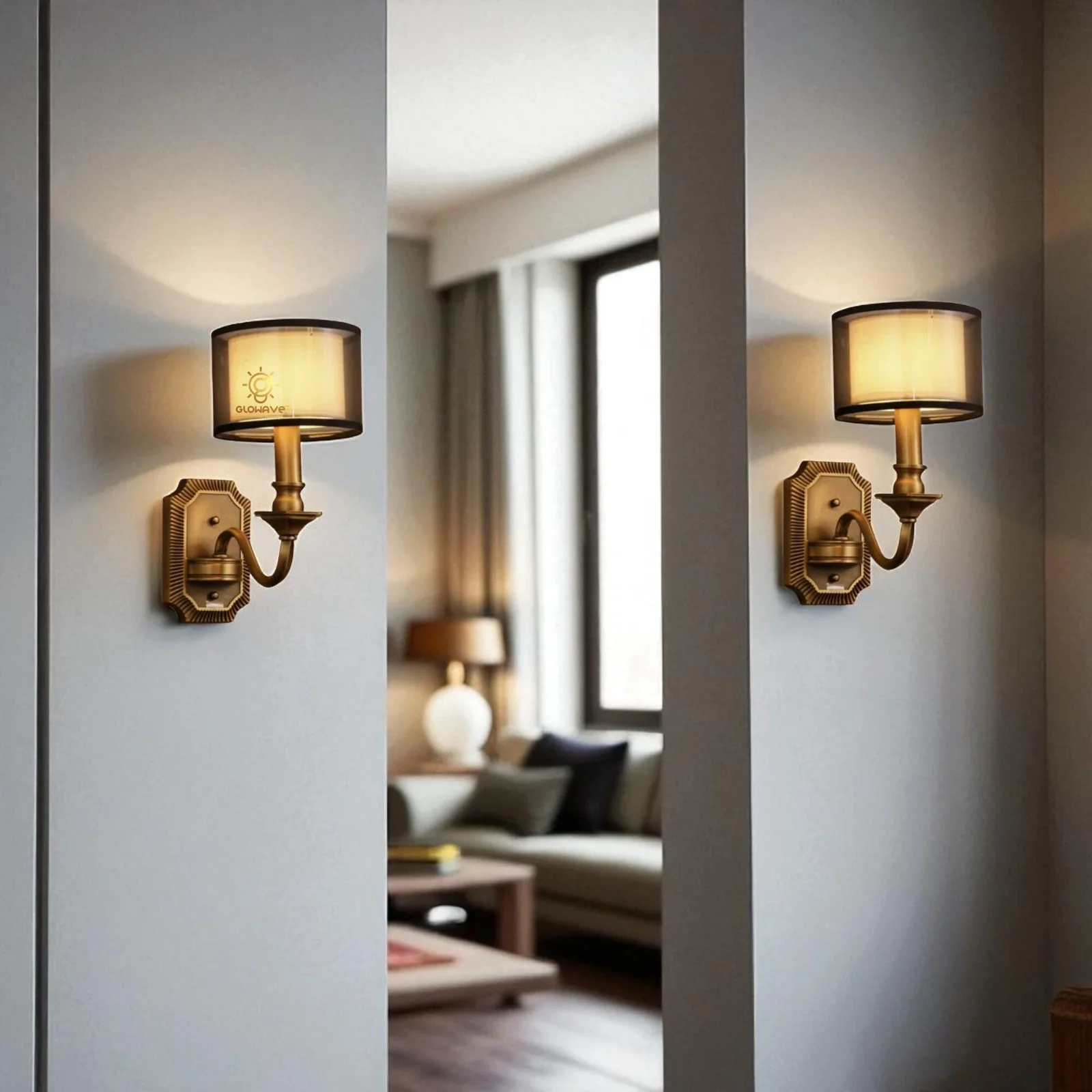 - Stylish Design: Gold Finish Fabric Shade Wall Sconce.