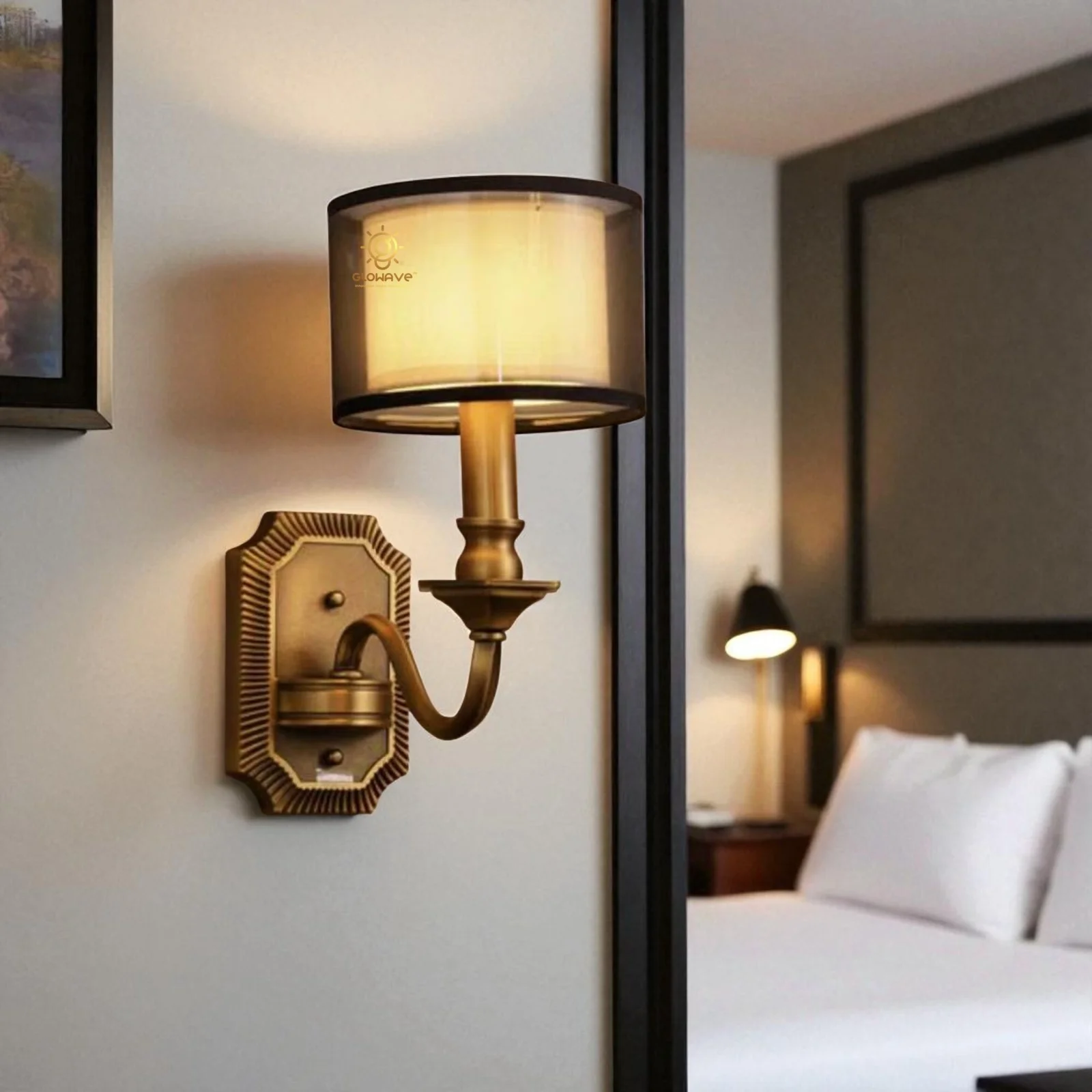 Antique Gold Metal Body Fabric LampShade Wall Lamp - Warm White (1901/1W)