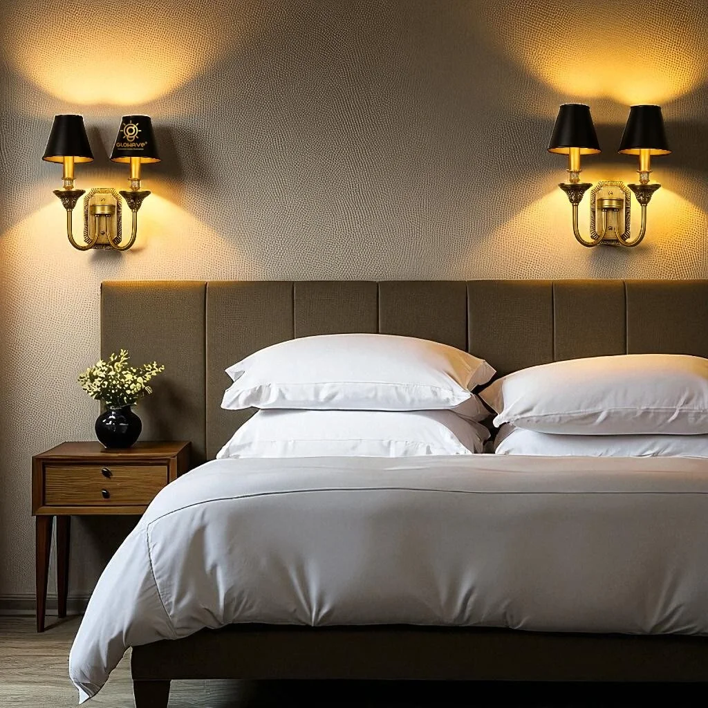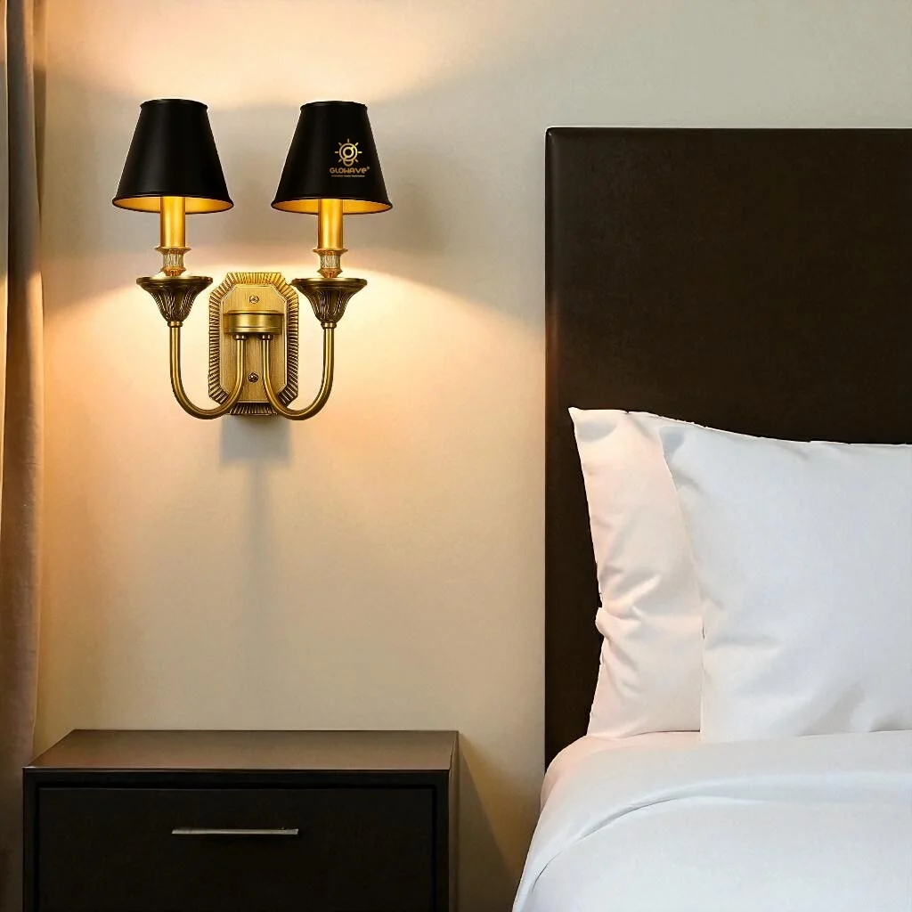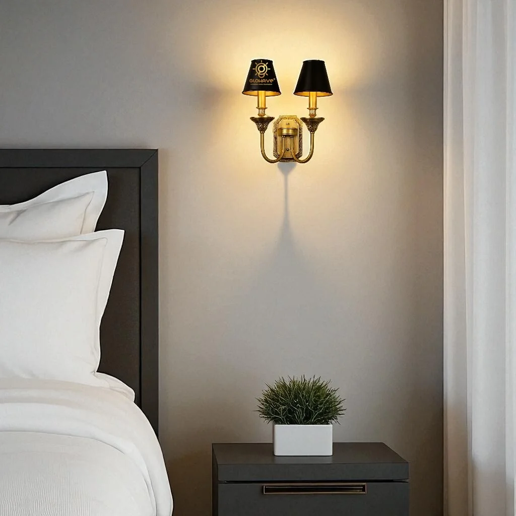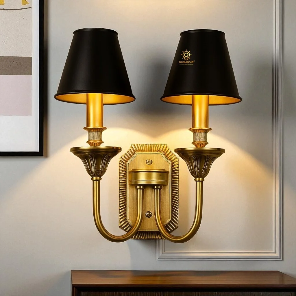 Antique Golden Metal Body Black Fabric LampShade Wall Lamp - Warm White (1902/2W)