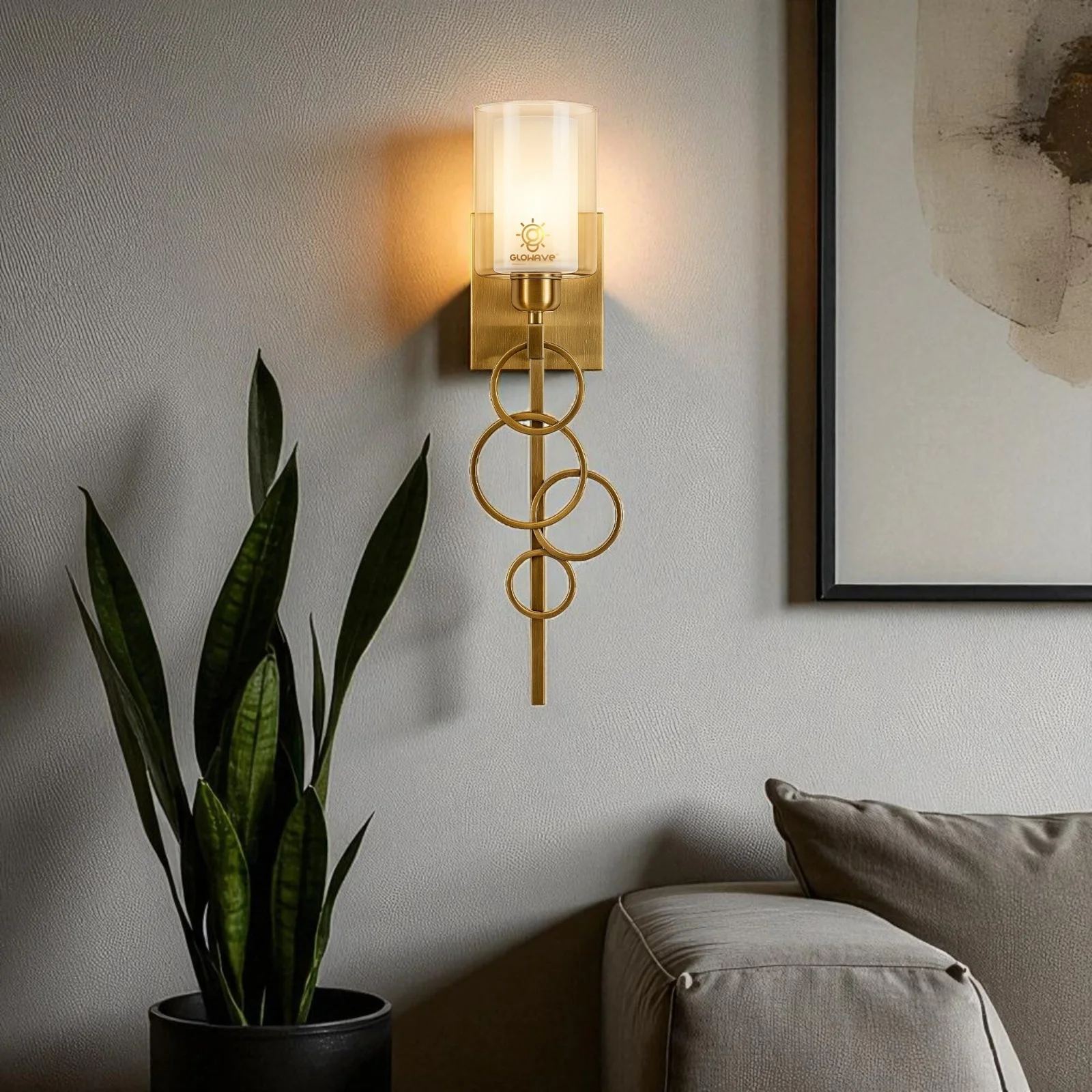 Antique Ring Gold Finish Crystal Column Square Base Vintage Wall Lamp - Warm White (5150-1/W)
