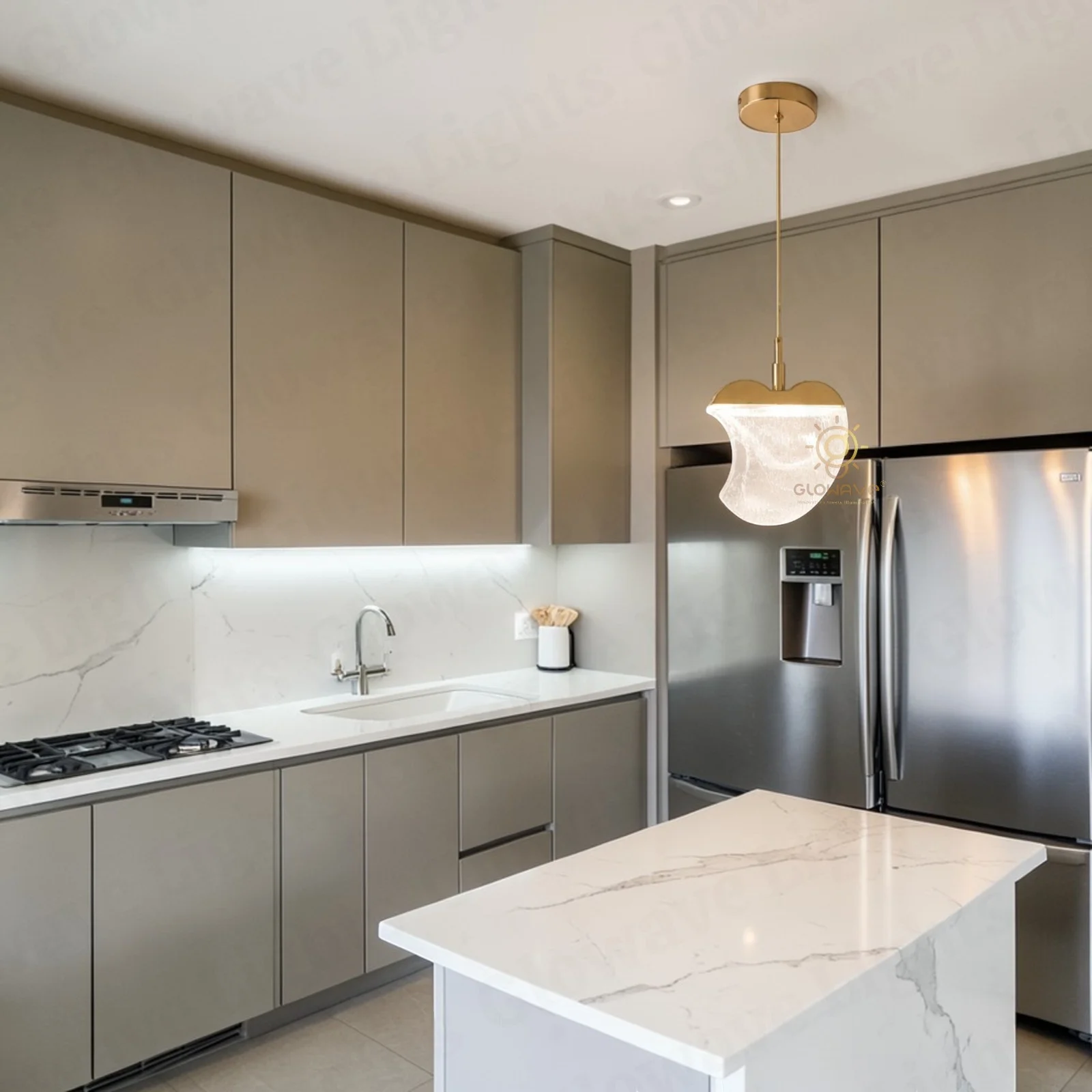 Enhance your interior décor with this Modern Apple Shape Gold Glass Pendant Light, a perfect combination of artistic design and elegant lighting. Inspired by the natural apple-shaped silhouette, this designer hanging lamp brings a unique and stylish look that instantly elevates modern interiors.