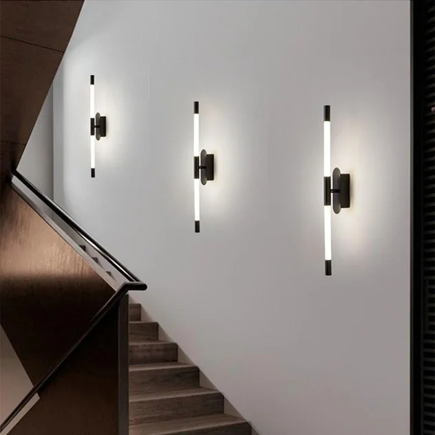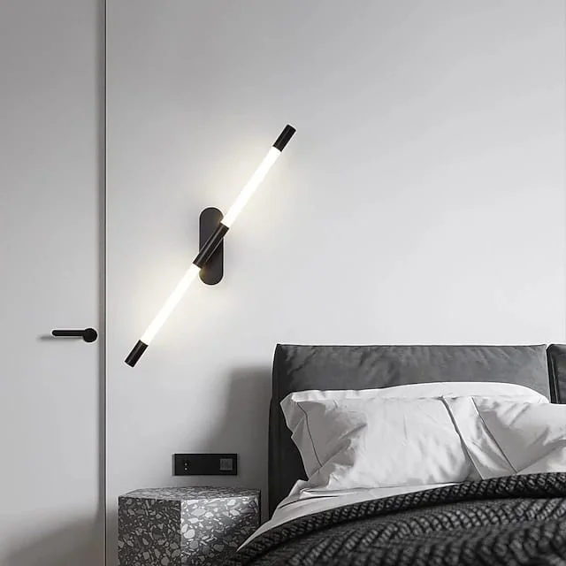 Black 700mm Metal LED Long Tube Wall Light with Adjustable Height - Tricolour